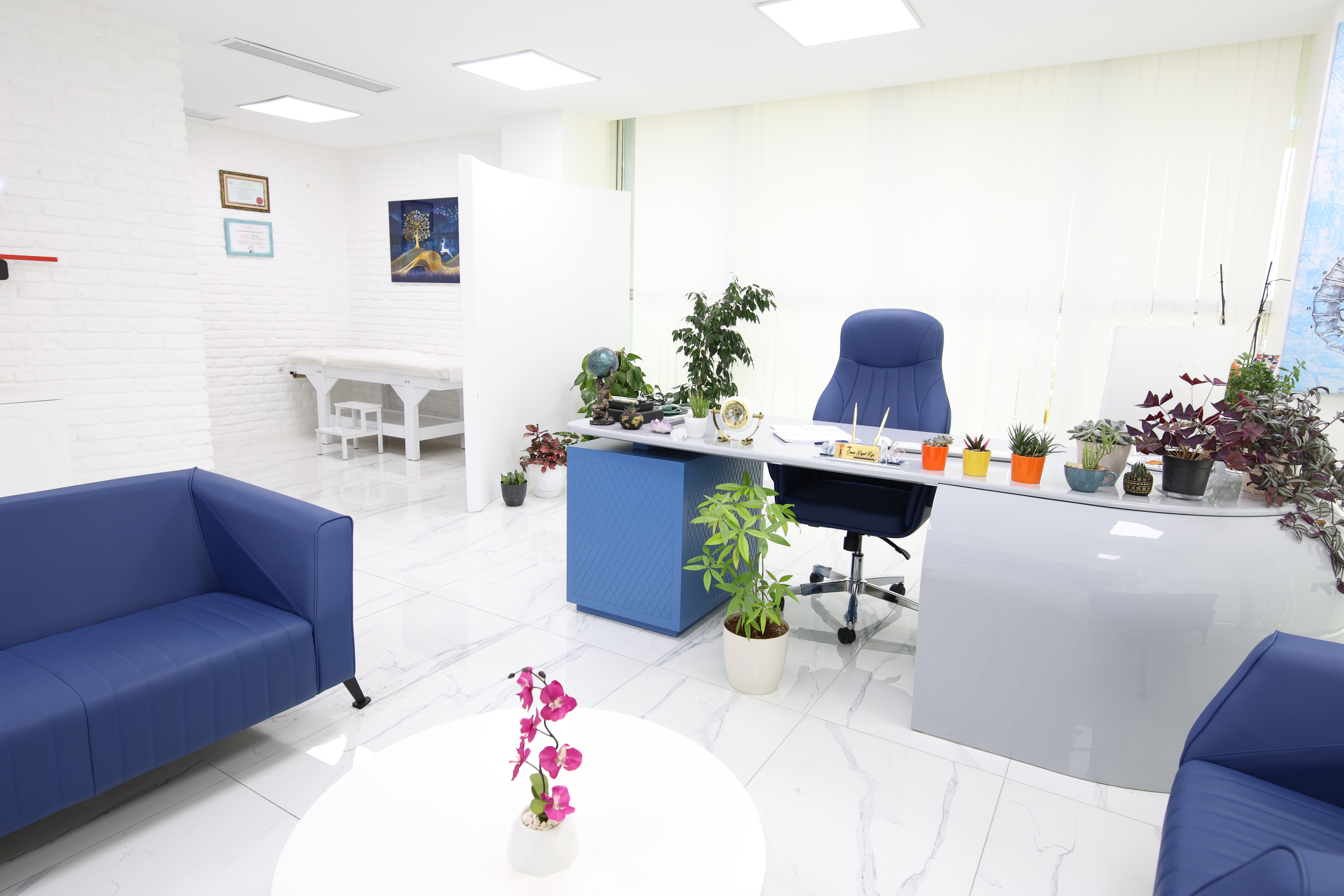 Her muayenehane, doğal ışıkla aydınlanan, özenle tasarlanmış modern mekânlarda hizmet verir. Hastalar için şeffaflık ve güveni, hekimler içinse özgürlüğü ön plana çıkarır.