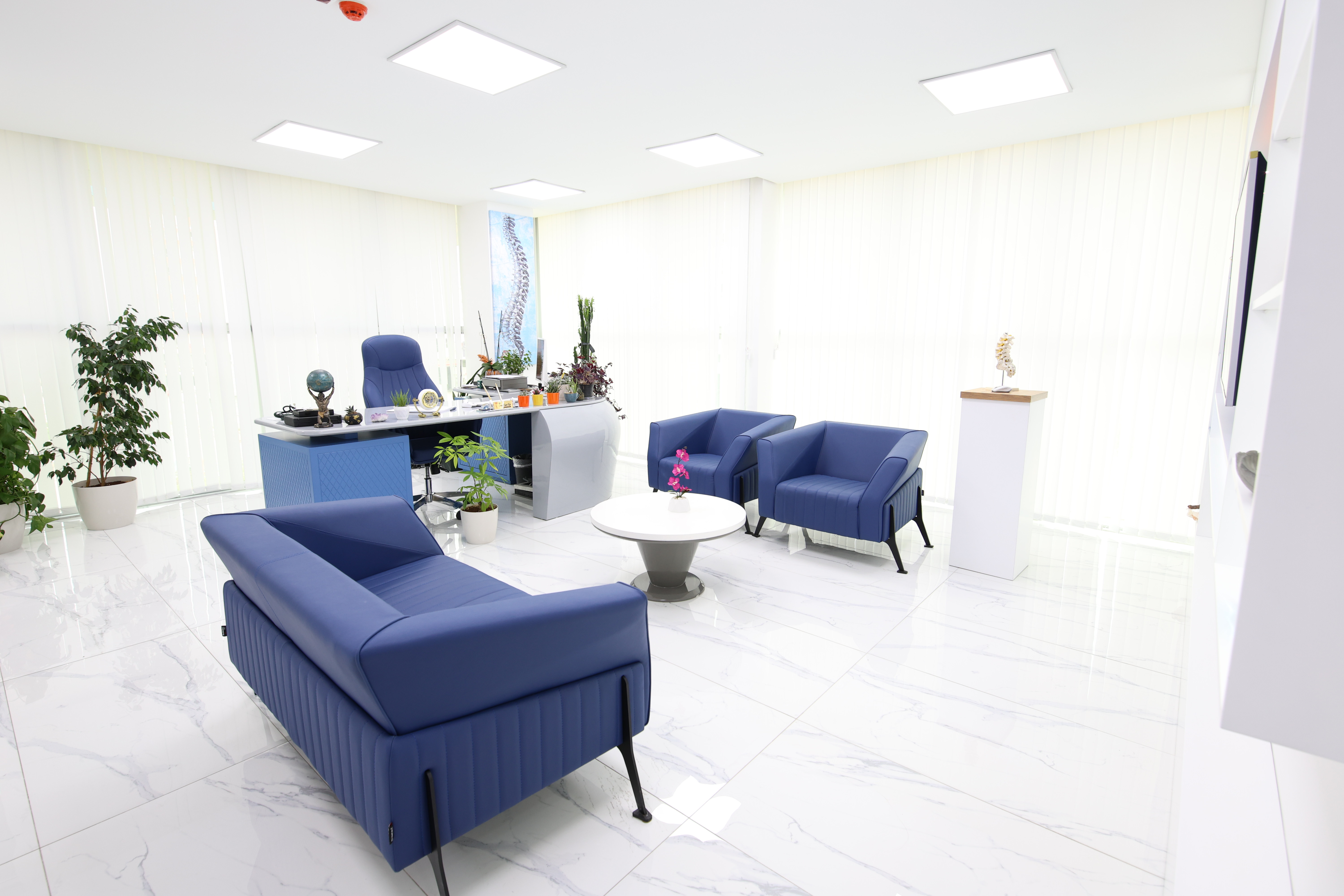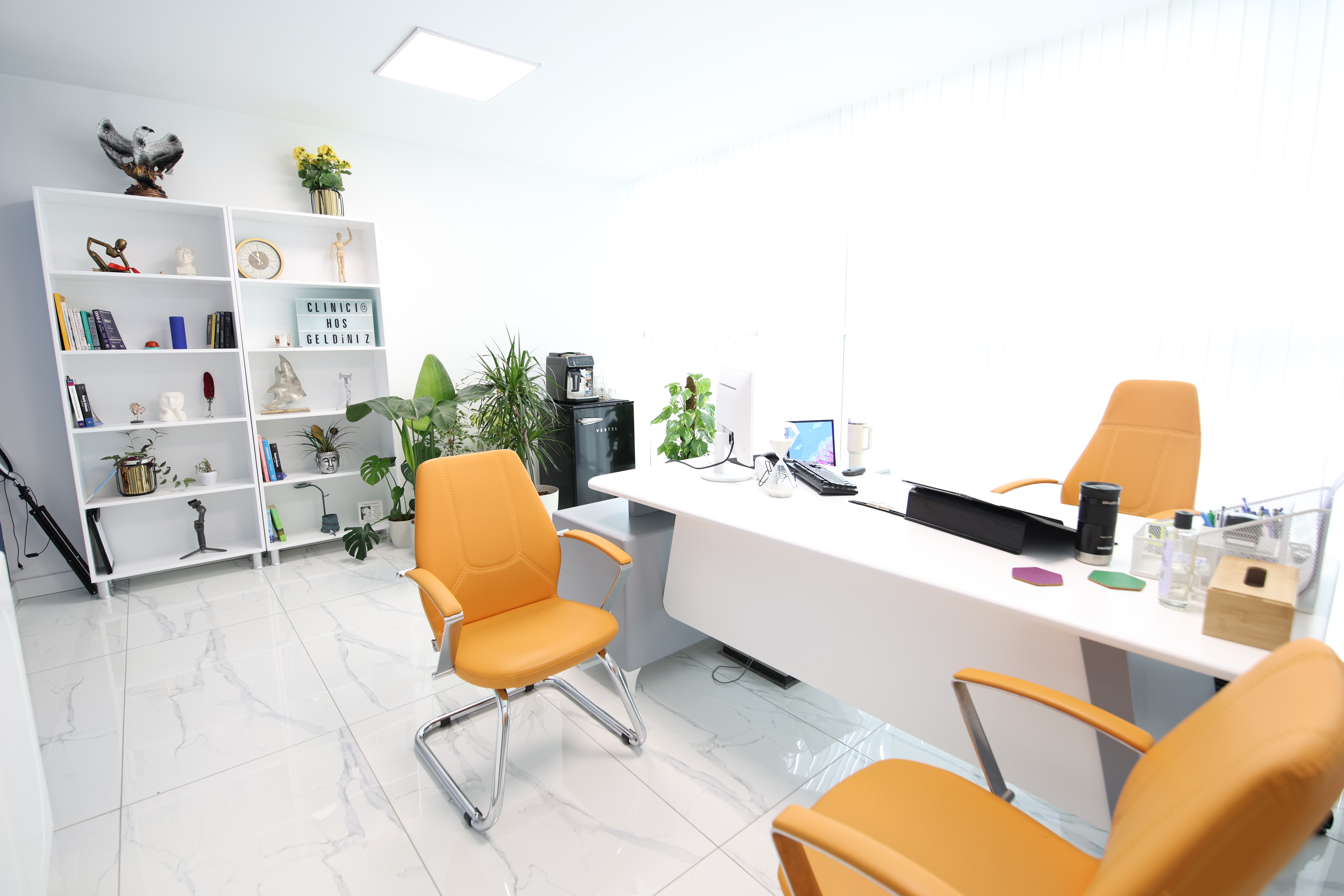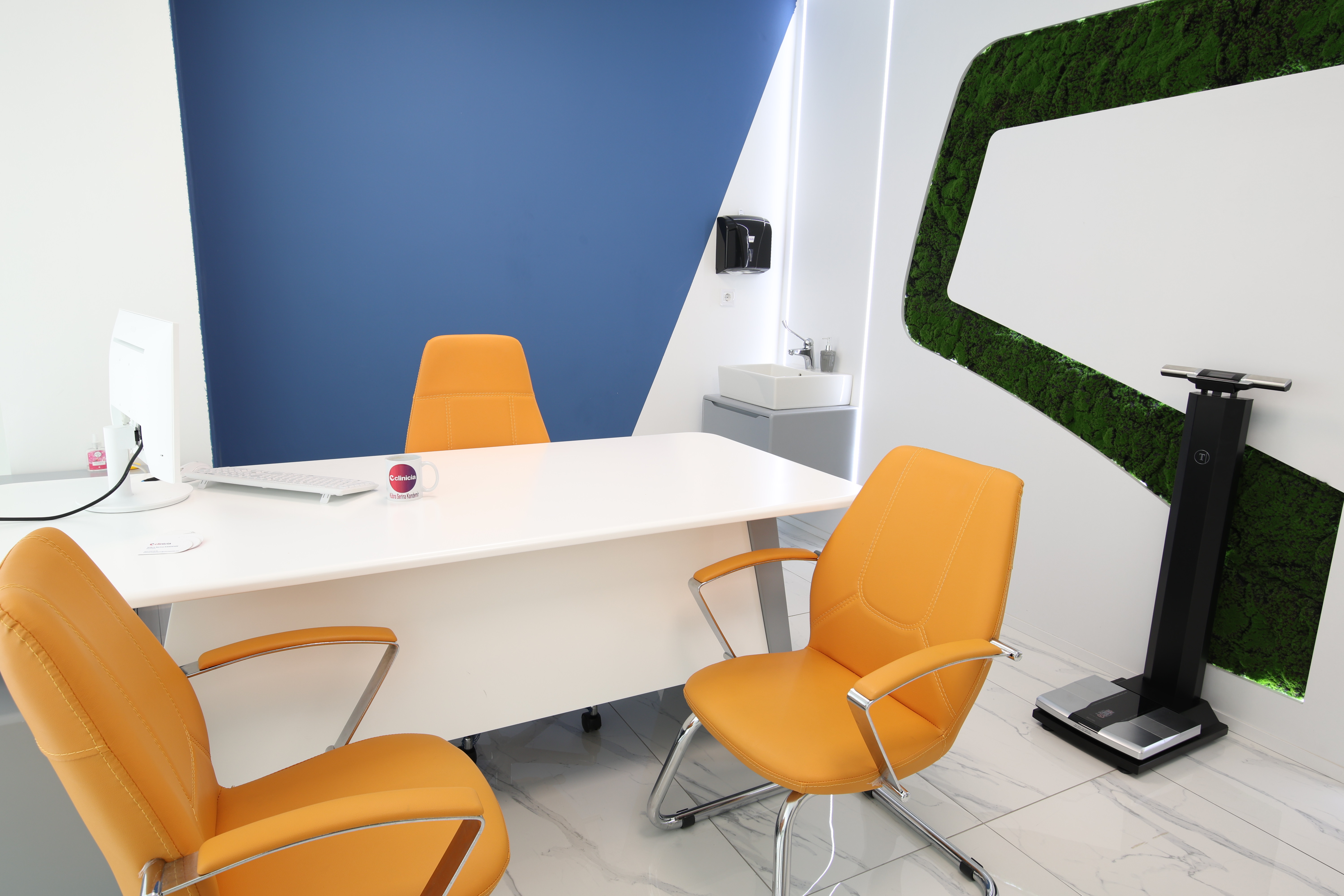 Her muayenehane, doğal ışıkla aydınlanan, özenle tasarlanmış modern mekânlarda hizmet verir. Hastalar için şeffaflık ve güveni, hekimler içinse özgürlüğü ön plana çıkarır.